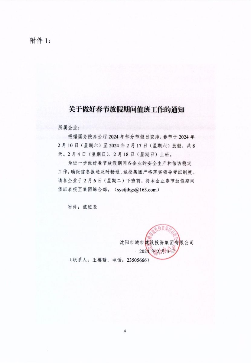 關于做好2024年清明節(jié)放假期間值班工作的通知